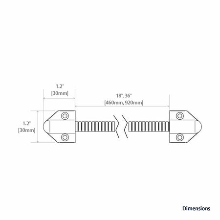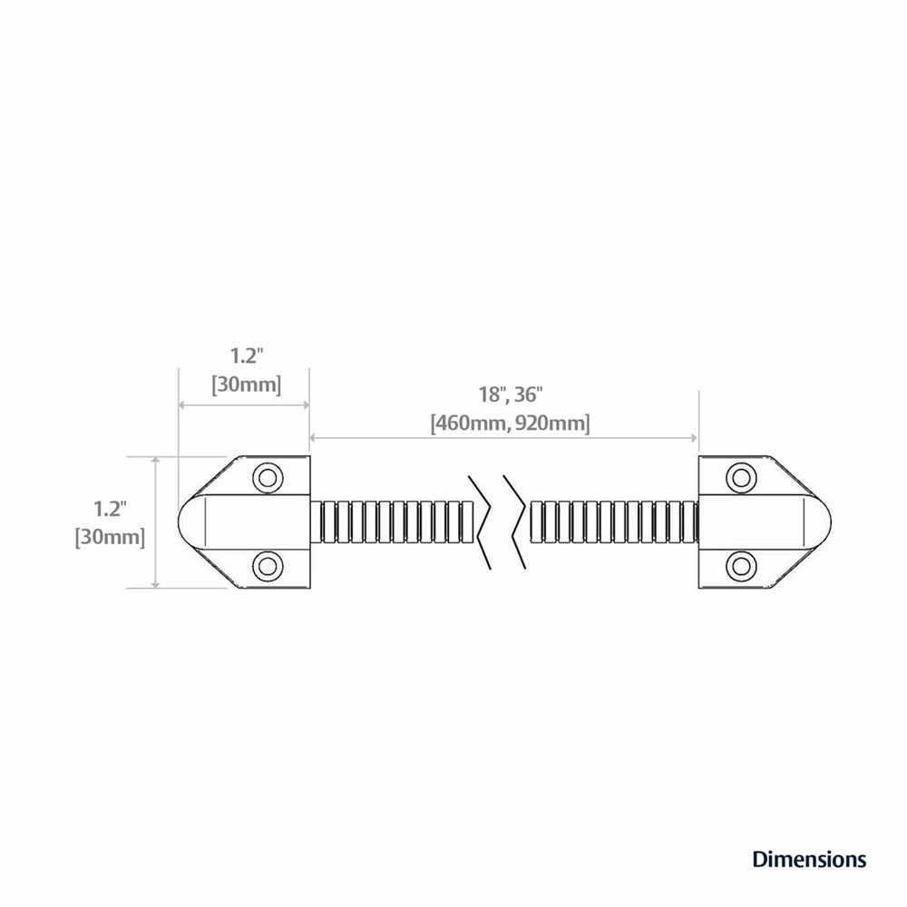 - Consists of an 18" [460mm] or 36" [920mm] armored stainless steel cable and plastic end pieces in light gray and black