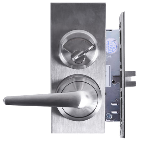 Heavy Duty Anti-Ligature Lever Mortise Lockset, Grade 1, Privacy/Bathroom with Deadbolt, Non-Keyed, ANSI, Escutcheon Lever Trim, Satin Stainless Steel