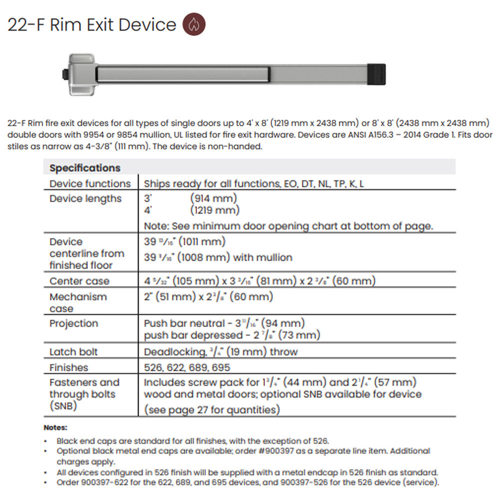 Von Duprin 22L-F - Lever Rim Exit Device Von Duprin 22 Series - Fire Rated