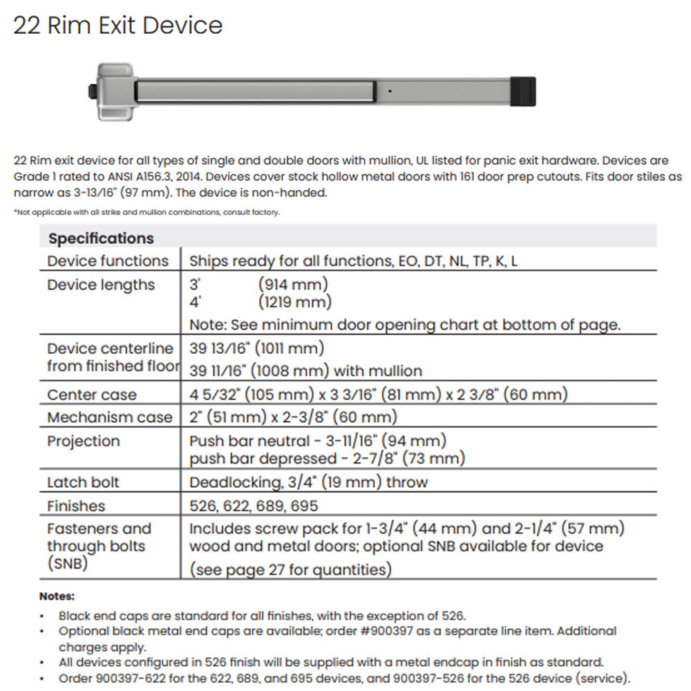 22 Series Rim Exit Device – Von Duprin