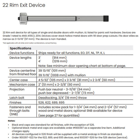 22 Series Rim Exit Device – Von Duprin
