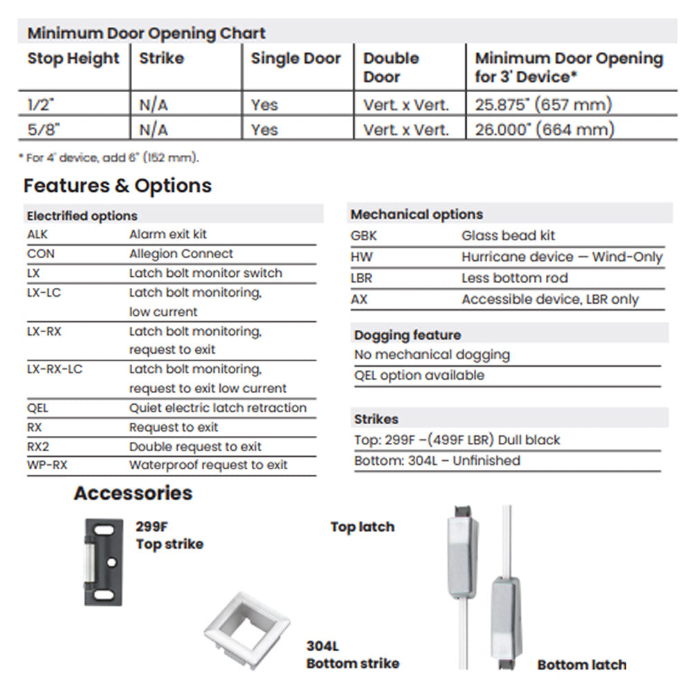 No mechanical dogging (QEL provides electric dogging option)