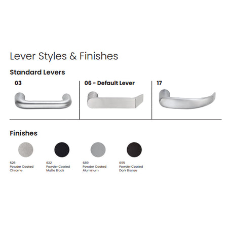 Comes standard with the Number 06 lever. Optional lever styles 03 and 17 are also available to suit your preference. -