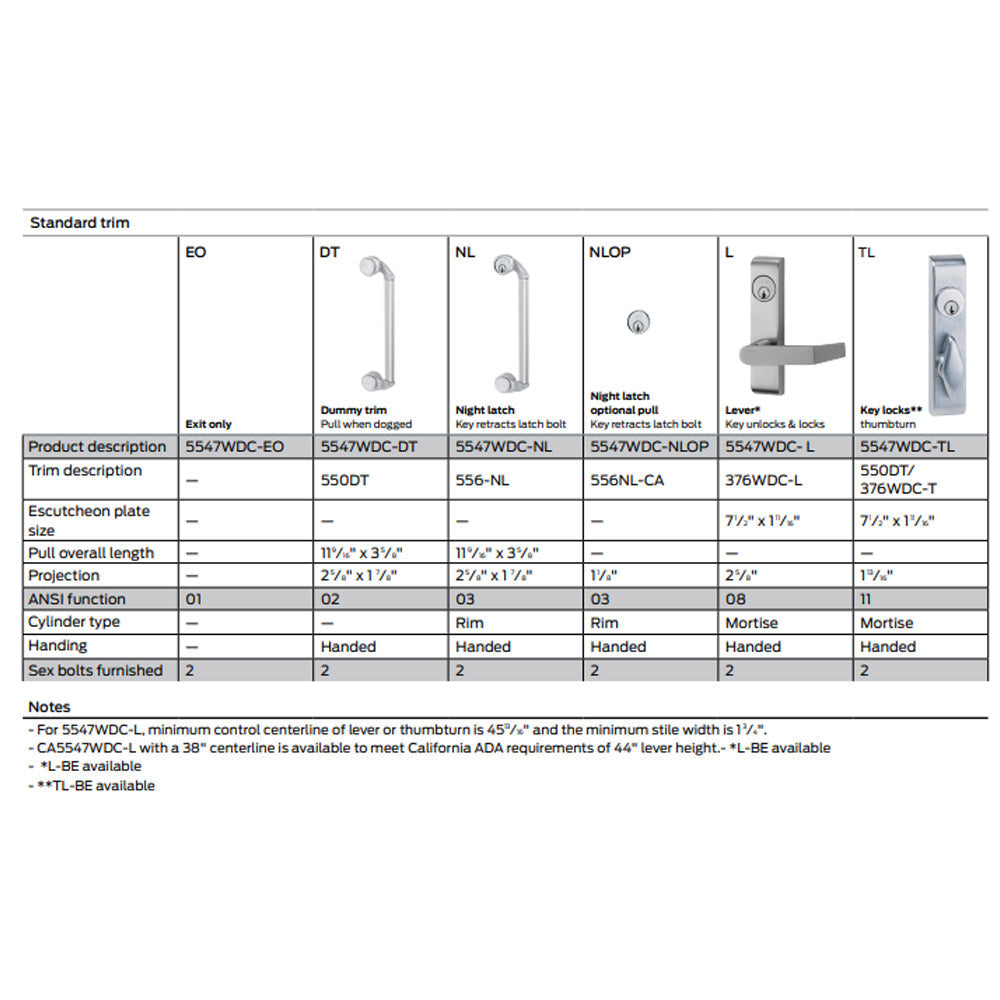 Compatible with Von Duprin 33A/35A Series and 55 Series Exit Devices