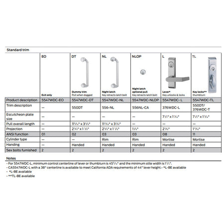 Von Duprin 555NL Night Latch Trim for 55 Series Exit Devices - For Metal Doors