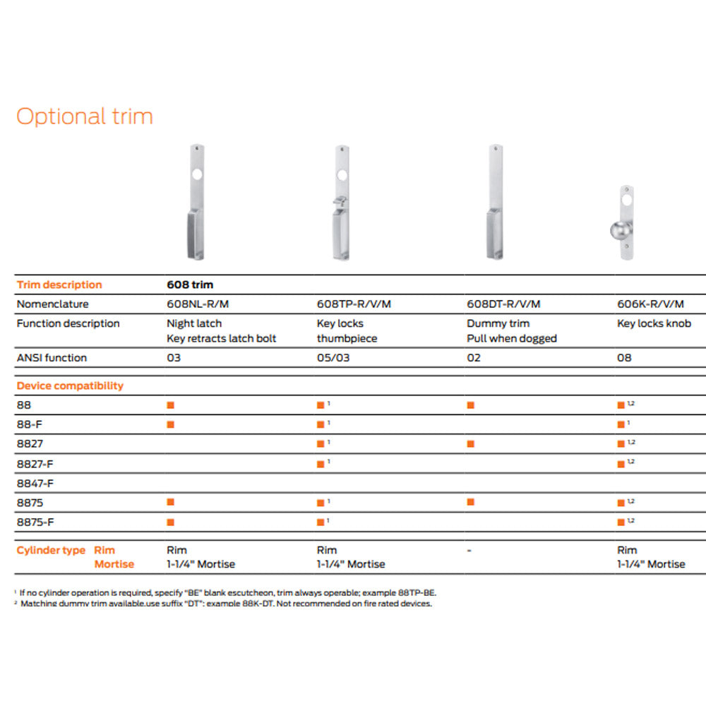 | 608DT-R/V/M | Dummy Trim | Pull when device is dogged (inactive function) |