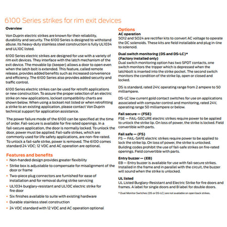 FSE - Fail Secure (Standard) - 24 V / DS - Dual Monitor Switch / 630 - Satin Stainless Steel