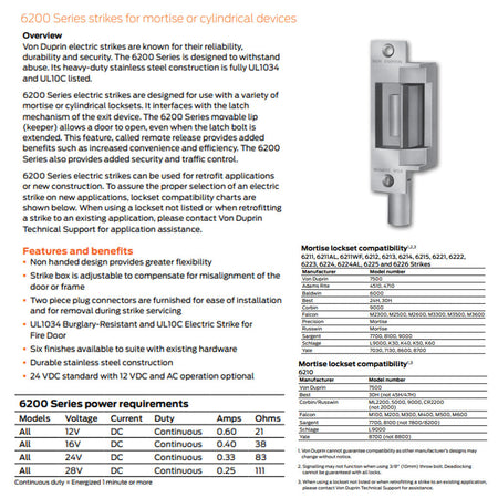 6200 Series Electric Strikes – Heavy-Duty, Fire-Rated, Versatile Access Control