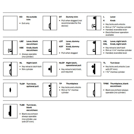 Variations include R (Rim), V (Vertical rod), and M (Mortise) compatibility