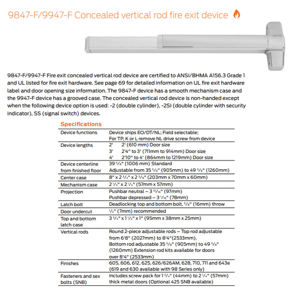 9847/9947 Concealed Vertical Rod Device - Fire Rated