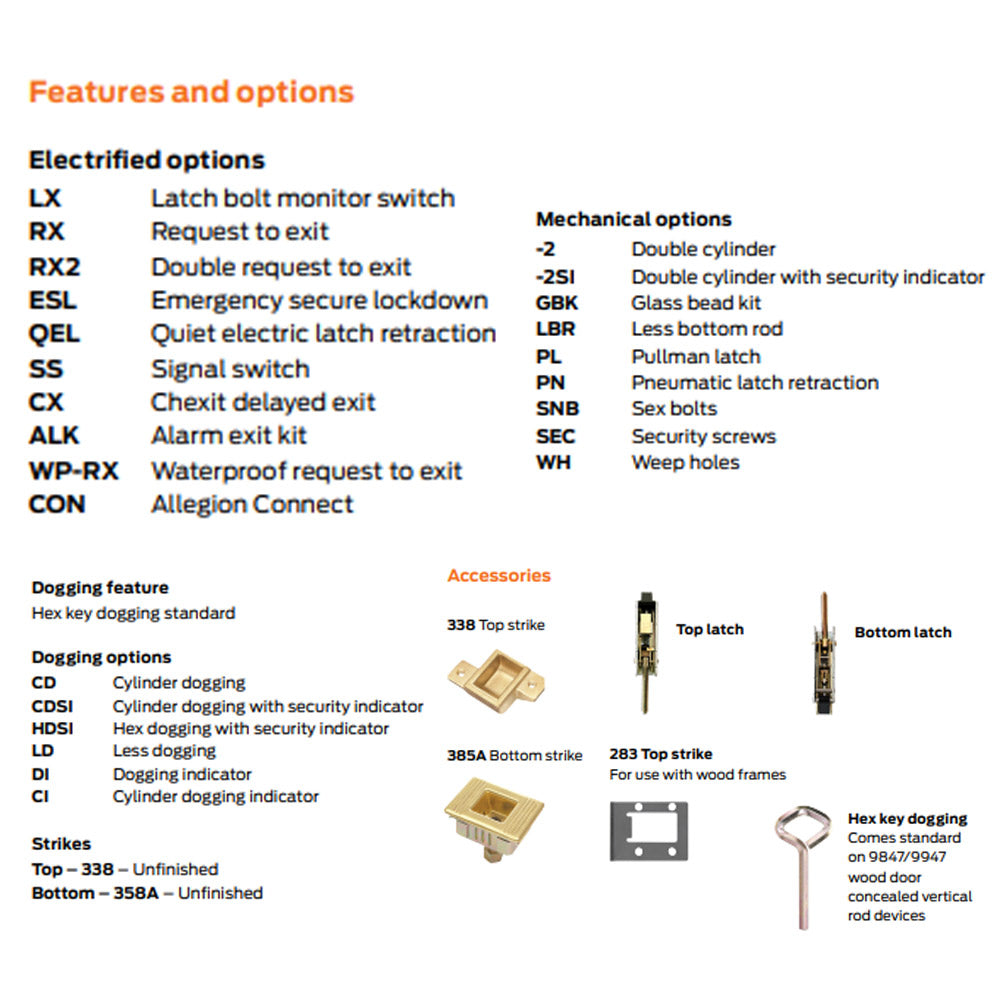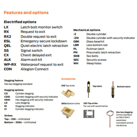 The 98/99 Series offers a solution for most single, double and double egress door applications. Below are the available device types: