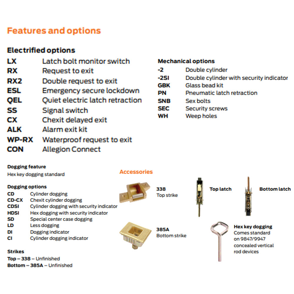The 98/99 Series offers a solution for most single, double and double egress door applications. Below are the available device types: