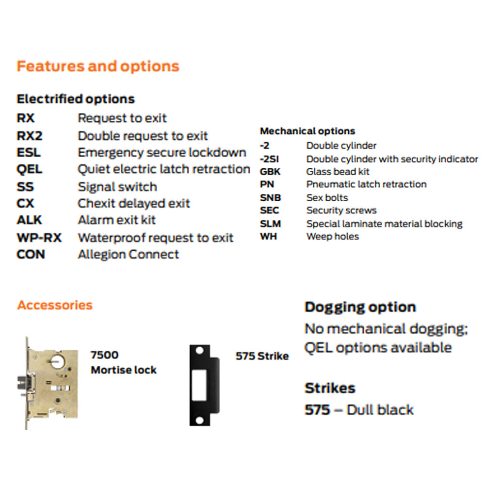 - E7500: Electric mortise lock device