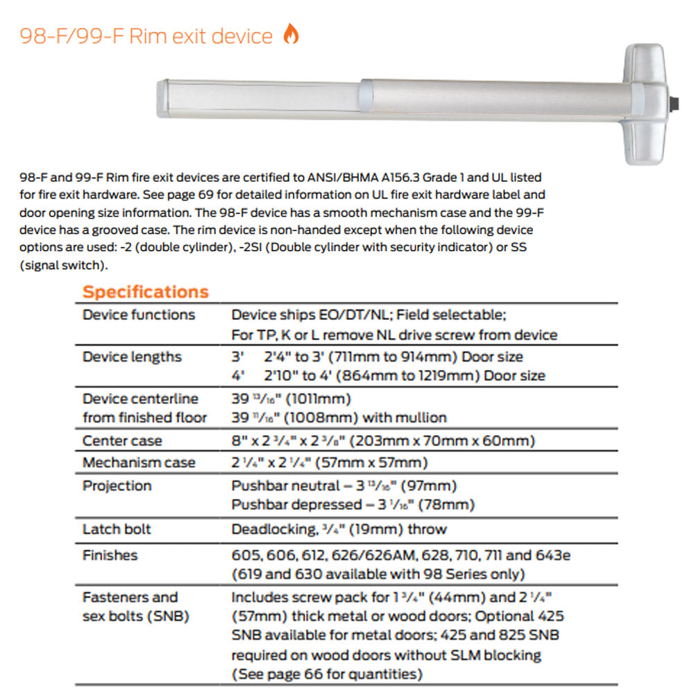 - XP: patented 2-O 23 piece latchbolt design, available for 98/99 Series panic and fire applications