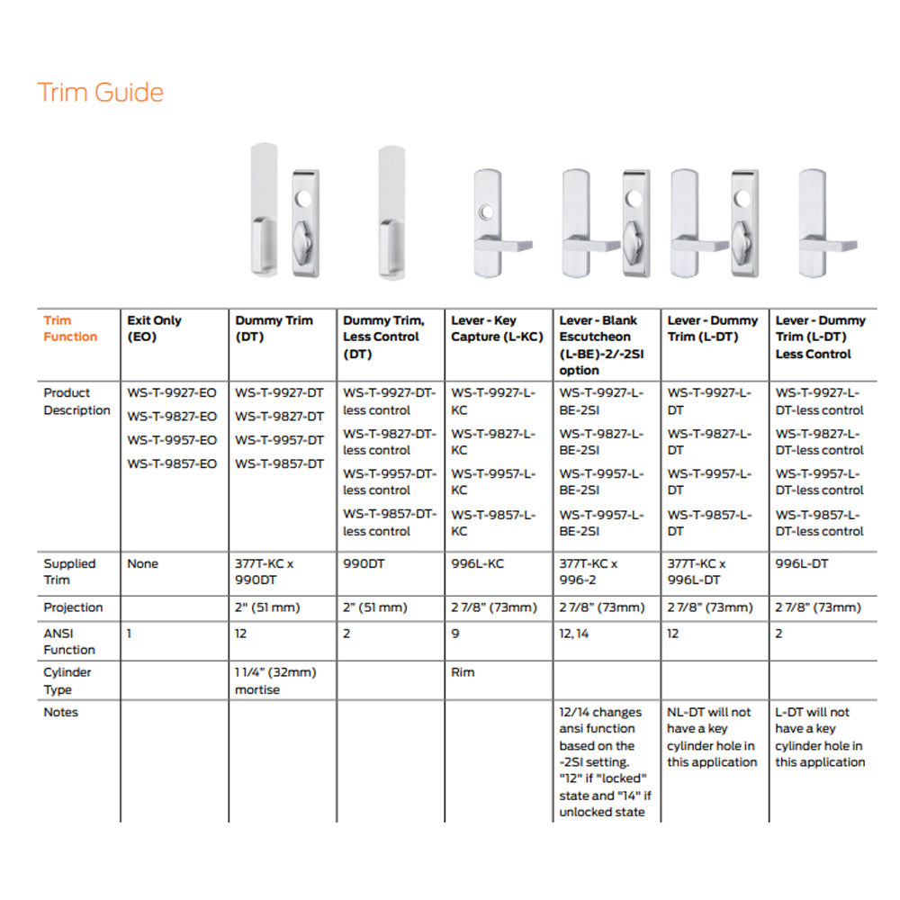 The 98/99 Series offers a solution for most single, double and double egress door applications. Below are the available device types: