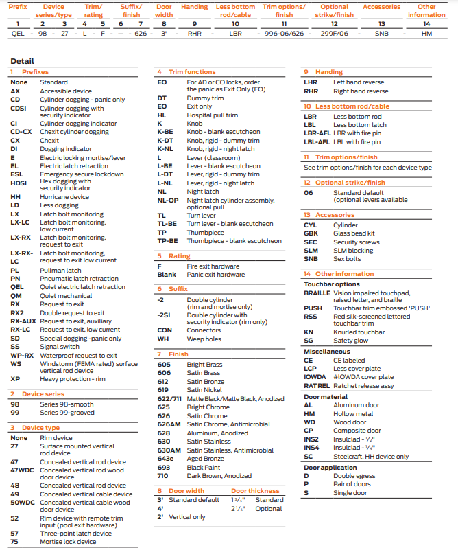 The 98/99 Series offers a solution for most single, double and double egress door applications. Below are the available device types: