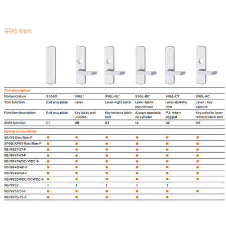 Von Duprin is committed to protecting your investment by offering modular, flexible solutions that adapt to your facility’s evolving needs. The 98/99 Series supports a wide range of trim options, providing both mechanical and electronic compatibility. As new features and technologies emerge, these trims can be easily upgraded—delivering long-term value and enhanced functionality.