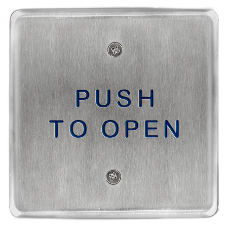 BEA 10PBS45 Stainless steel push plate, 4.5 In. square, blue text only